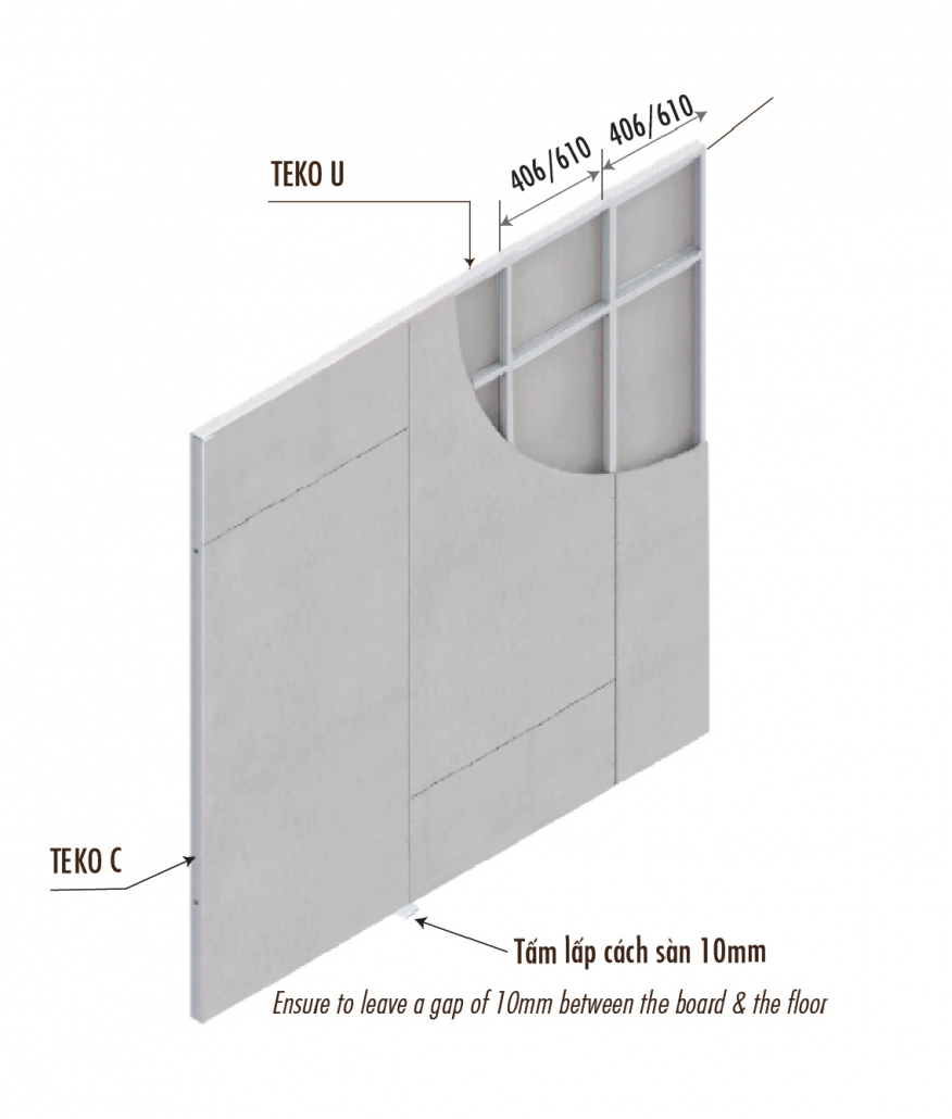 The TEKO Partition Frame, developed by Hiệp Vĩnh Phú Joint Stock Company, is used in a wide range of projects—from residential houses to offices and commercial centers. It offers high quality, easy installation, and allows for convenient maintenance of internal electromechanical systems without affecting the structural integrity of the building. It significantly reduces construction time and helps lower investment costs.