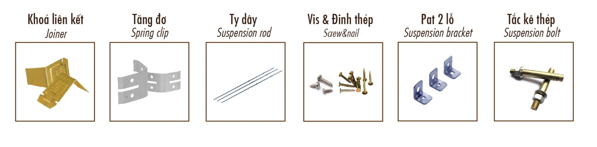 Hệ khung trần chìm TEKO U4000-29 bao gồm các thành phần: